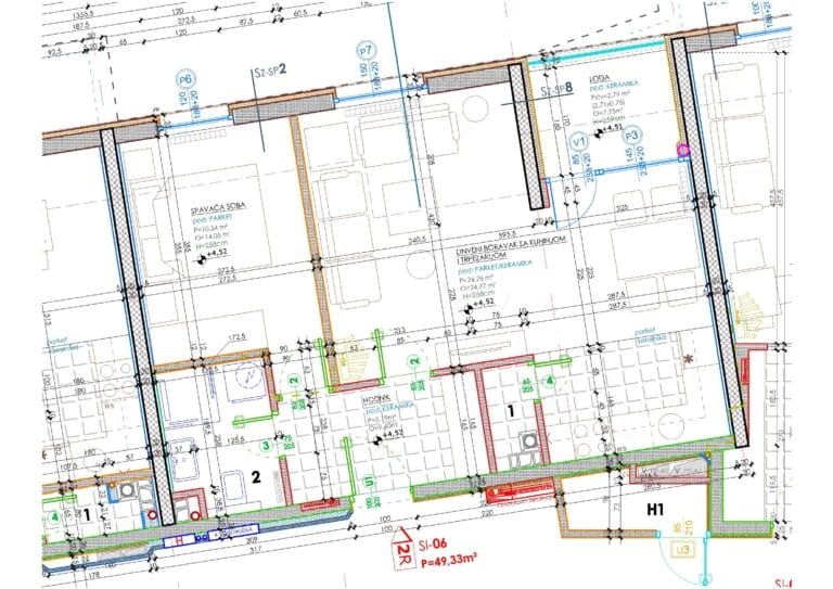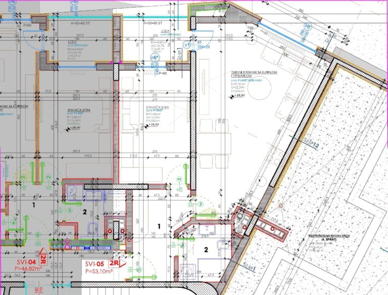 pregradni zidovi u objektu i obložni zid vertikalne hidroizolacije;