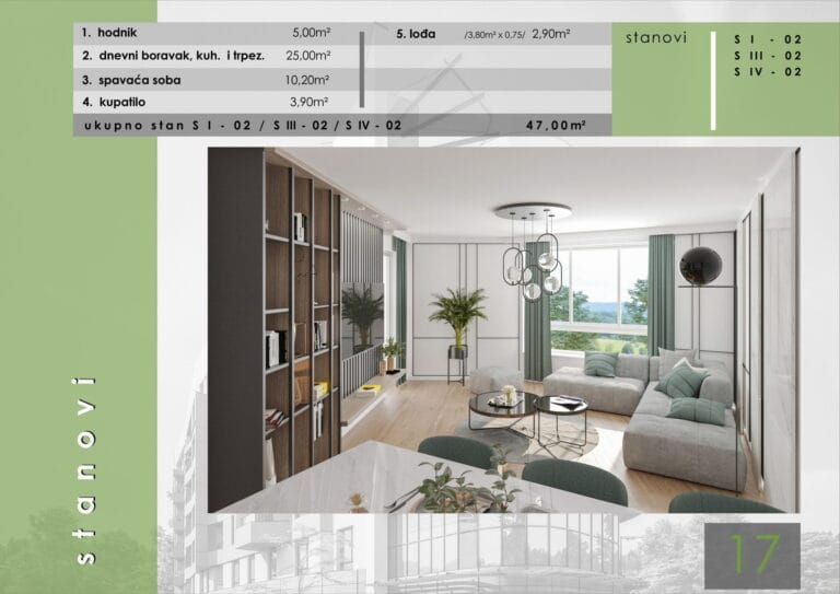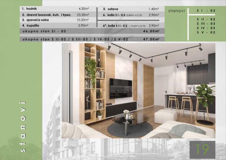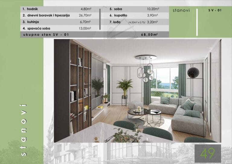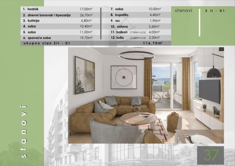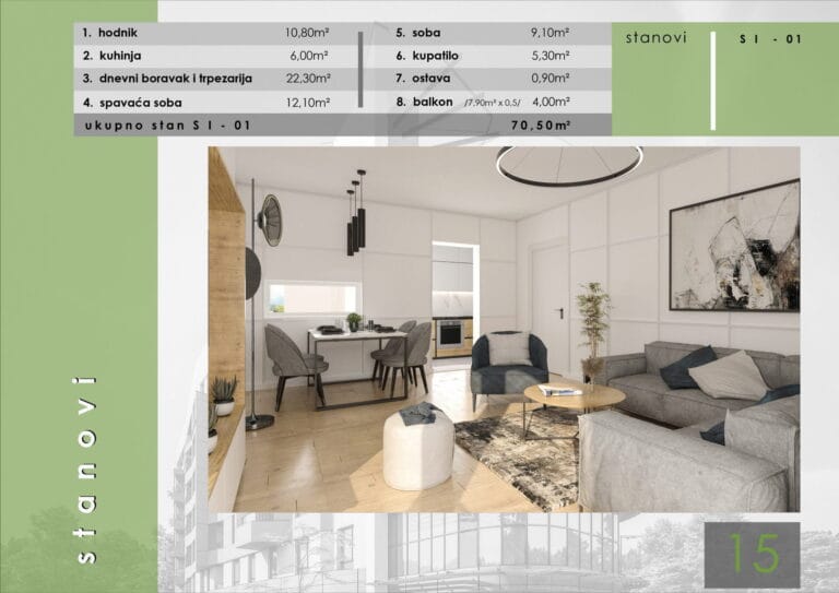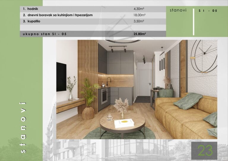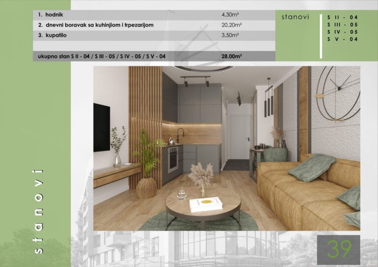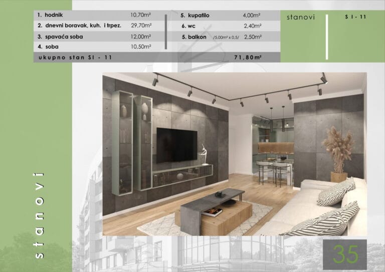 Stan se može kupiti uz učešće od 20% a ostatak isplate u jednakim mjesečnim, kvartalnim ili polugodišnjim ratama do useljenja.