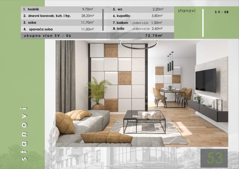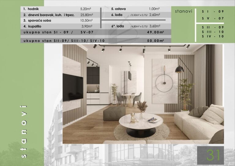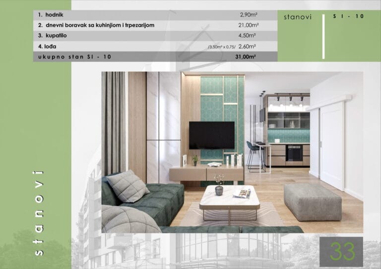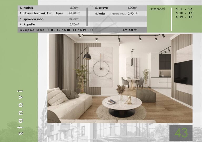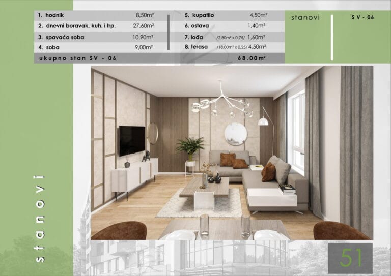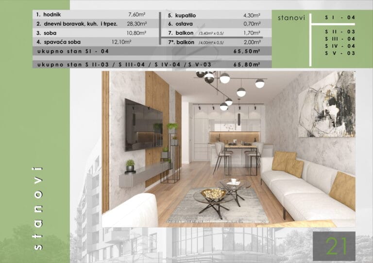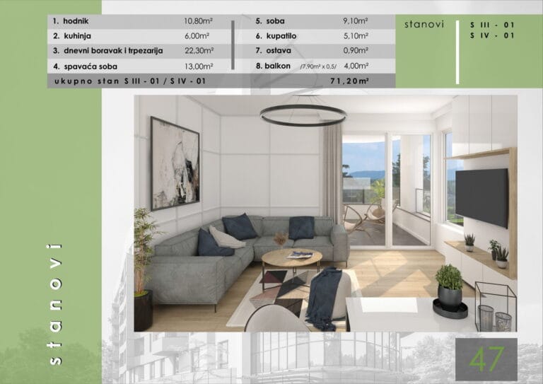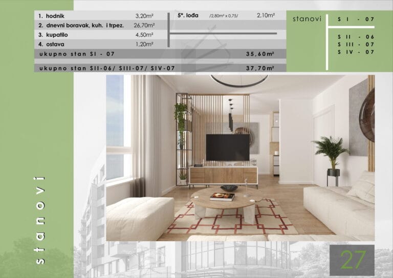 Stan se može kupiti uz učešće od 20% a ostatak isplate u jednakim mjesečnim, kvartalnim ili polugodišnjim ratama do useljenja.
